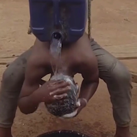 The finance minister after the lights went out in the new US$ 200 million Chinese-built parliament when he was delivering his 2025 budget speech. It was seen as an unprecedented security breach at the hitherto impregnable building as the president was hurried out by bodyguards and a few opposition members cried; Ha,ha, the true state of the nation, hey! And this is how to wash your hair when there’s neither running water in the taps nor electricity available. (20 litre jerry can – chigubu – strapped onto your back.)